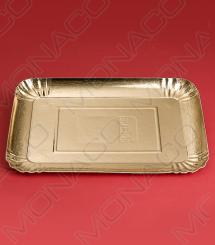 Elegantní papírový tácek s voděodolnou, polyetylenovou, zlatou fólií.