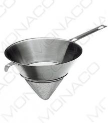 Cedník z nerezové oceli s jemným drátěným sítem.