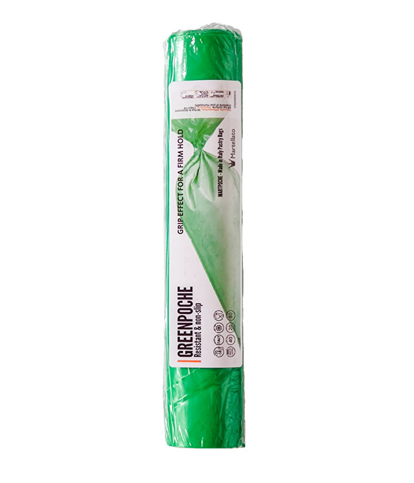 Objevte sílu a pohodlí GreenPoche. Jeho vícevrstvá struktura zaručuje maximální spolehlivost pro jakýkoli druh náplně. Inovativní povrchová úprava „grip efect“ vám poskytne výjimečnou kontrolu i s mokrýma rukama nebo mastnou náplní, přičemž zachovává pevný a bezpečný úchop za všech okolností. Splňuje nejvyšší bezpečnostní standardy, díky výrazné barvě, která umožňuje nalezení odstřižené špičky v používané hmotě.