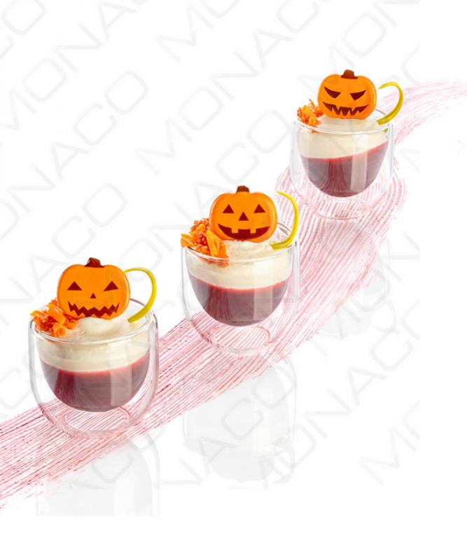 Čokoládové dekorace ve tvaru dýně z kvalitní čokolády mají široké využití při zdobení zákusků (minideserty, dorty, zmrzlinové poháry, palačinky...).