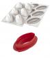 Profesionální sada silikonových forem pro výrobu krásných a originálních dezertů s různou texturou povrchu - v tomto případe s motivem kávových zrn, koncivaná Pastry Chefem Nina Tarasova z Litvy. Sada se skládá ze dvou částí: silikonové podložky s texturou kávových zrn a silikonové formy Buche. Kombinací silikonových podložek lze dosáhnout mnoha rozličných a nápaditých textur. Podložky lze použít na přípravu semifred, zmrzlin, čokolád a rozličných pečených výtvorů. Používá se i ve studené kuchyni, např. na masové aspiky. Forma je perfektní pro použití v troubě i šokeru, v rozmezí teplot od -60°C do +230°C. Forma se dá použít v mikrovlnné troubě a lze ji mýt ručně nebo v myčce na nádobí. Před použitím výrobek opláchněte ve vodě.