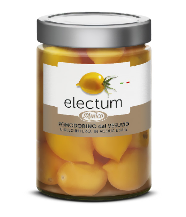 Pomodorini col pizzo jsou typicky oválná žlutá rajčátka se špičkou, celá včetně slupky naložena ve slaném nálevu.