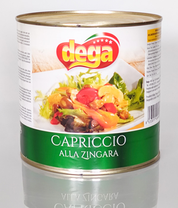 Capriccio je rozmanitá zeleninová směs z dobře zralých červených a žlutých paprik, žampionů, zelených oliv a kapary, naložených ve slunečnicovém oleji a bylinkovém nálevu.