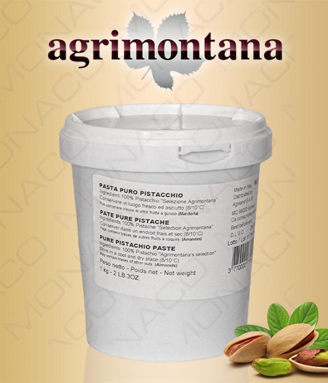 Výběrová ochucovací pistáciová pasta od Agrimontany, ideální pro výrobu zmrzlin, dezertů a náplní. Pasta je vyrobena drcením a šetrným válcováním výběrových loupaných pistácií. Agrimontana vyrábí pouze 100% přírodní a profesionální produkty, proto tento výrobek neobsahuje žádná přidaná barviva a aromata.
