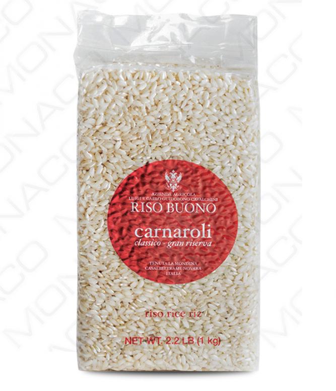 Riso Carnaroli Buono gran riserva patří mezi vysoce oceňované italské rýžové odrůdy na světě pro svoji vynikající schopnost absorbovat vůni a koření. Je charakteristická velkými a dlouhými zrny. Oproti jiným rýžím je odolná proti rozvaření a tím pádem velmi vhodná k přípravě rizota a rýžových salátů.