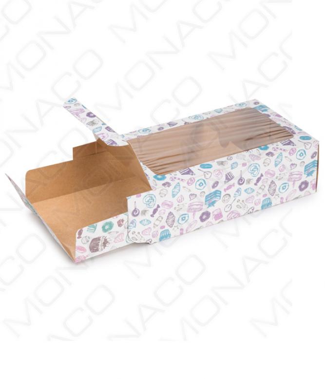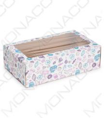 Vysouvací krabička na makronky s integrovaným víčkem a průhledným okénkem v designu Sweet. Design je jednoduchý a elegantní. Ideální pro cukrárny a kavárny. Může obsahovat až 12 kusů o průměru 4,5 - 5 cm a tloušťkou 2 – 3 cm. Krabičky jsou vyrobené z kraftového papíru a jsou vhodné do trouby i do mikrovlnky. Krabička na jídlo je vyrobena z recyklovatelného materiálu, který ma za cíl snížít ekologickou zátěž obalů na pokrmy. Může být recyklovaná ihned po použítí. Průzor je z materiálu: PE a PP + PLA, není tedy recyklovatelný.