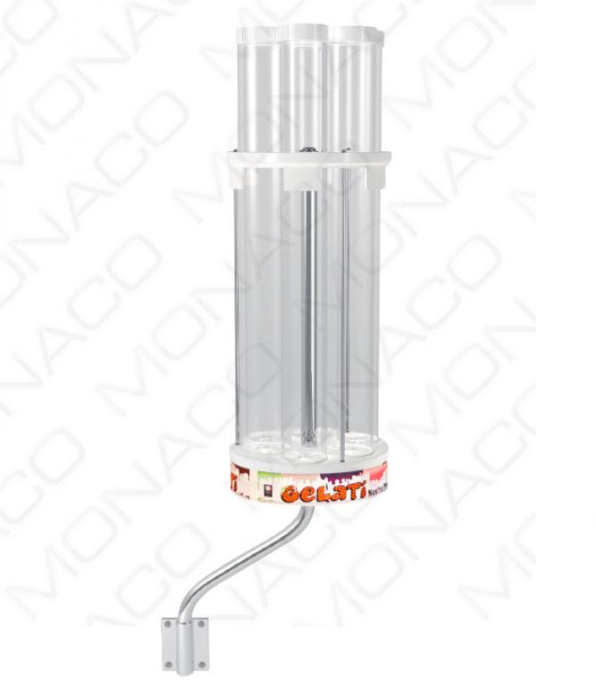 Závěsný šestitubový zásobník na zmrzlinové kornouty je určený pro připojení k pákovému zmrzlinovému stroji.Lze ho připevnit na stěnu nebo na okraj pultu.