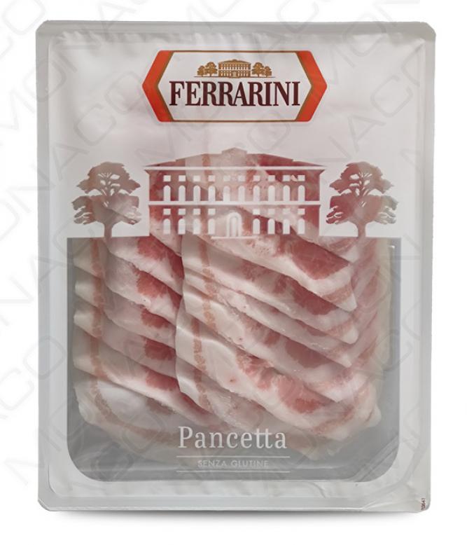 Tradiční italská slanina vyrobená z vepřového boku, jemně solená, ochucená kořením a následně sušená. Má plnou, šťavnatou chuť a jemně mramorovanou strukturu. Připravená v praktických tenkých plátcích, ideální do sendvičů, na pizzu, do těstovin nebo na obložené mísy.