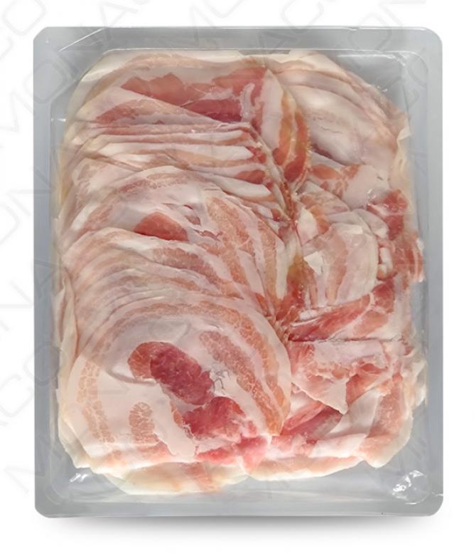 Složení: Vepřový bůček, sůl, dextróza, přírodní aromata, antioxidant: askorbát sodný, konzervanty: dusičnan draselný, dusitan sodný. Původ masa: Itálie.