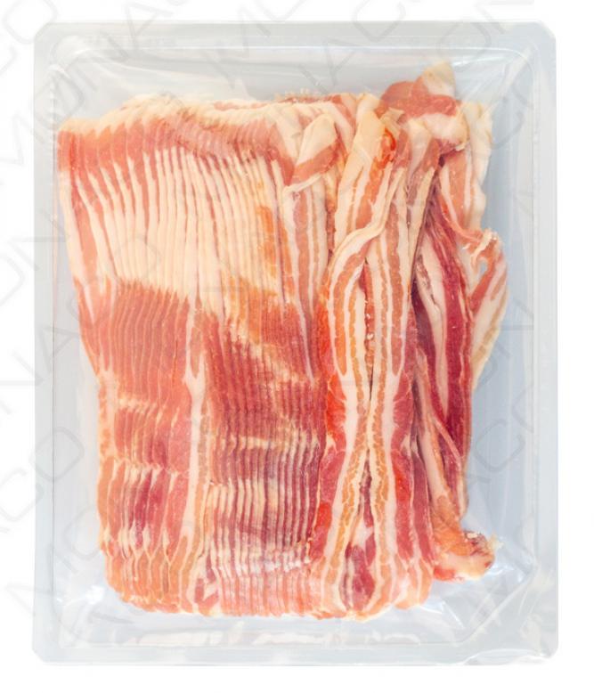 Slanina krájená na protáhlé plátky.Složení: Vepřový bůček, sůl, kouřové aroma, aroma. Antioxidant: askorbát sodný. Konzervant: dusitan sodný.Alergeny a GMO: neobsahuje