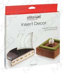 Speciální profesionální čtvercová silikonová forma INSERT DECOR SQUARE je vhodná k dokonalé cukrářské tvorbě. Forma umožňuje vytvořit 12 různých dekorací nebo vložek (6 na každé straně formy) o rozměru 40x40 až 260x260 mm a šířkou 20 mm. Tato forma v kombinaci se silikonovými formami série TOR nebo nerezovými ráfky (např. 47532), umožní i cukrářským začátečníkům stát se opravdovými mistry oboru. Je vhodná na výrobu semifred, zmrzlin, čokolád a nejrůznějších cukrářských dekorací. Formu lze použít v troubě, šokeru, mikrovlnné troubě, v rozmezí teplot od -60°C do +230°C. Lze ji mýt ručně nebo v myčce na nádobí. Před použitím omyjte formu ve vodě.