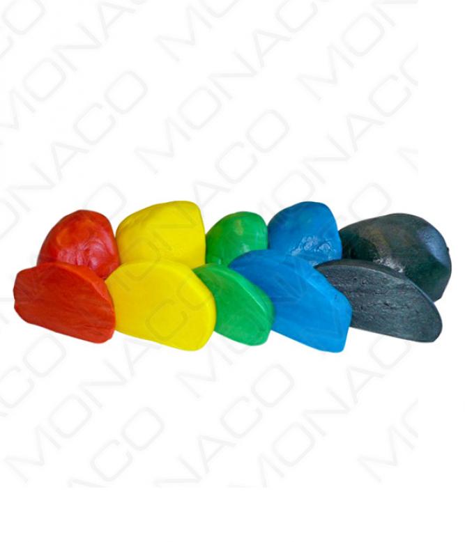 Složení: cukr, glukózový sirup, rafinované a plně ztužené rostlinné tuky (palma, bavlna, kokos, světlice barvířská, slunečnice, babassu, bambucké máslo a máslo illipe, v různém poměru), stabilizátor E414, E466, moučka ze semen guar E412, emulgátor glycerol E422, regulátor kyselosti kyselina citronová E330, konzervant sorban draselný E 202, barvivo kurkuma E 100, E120, E133 briliantní modrá, aroma.
