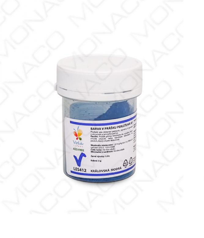 Barevný prach perleťově modrý AF (bez AZO barviv) se používá na zdobení čokolád, krémů, šlehaček, cukrových a modelovacích hmot, marcipánu, másla a semifreddi. Dodává vašim výrobkům perleťový efekt a zářivý lesk.