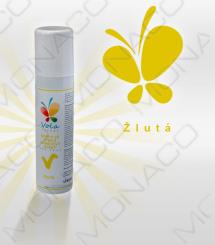 Složení: kakaové máslo, barvivo: E101. Propelent: E943a, E943b, E944