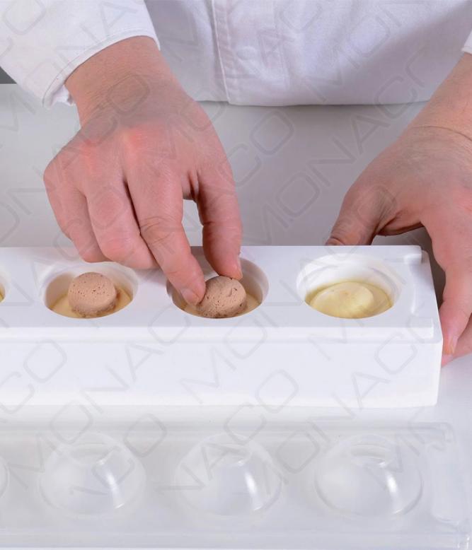 Po zamražení lze výrobek snadno vyjmout a těsto se nepřichytává. Jednotlivé formy bez tácu lze použít na pečení do teploty + 230°C.