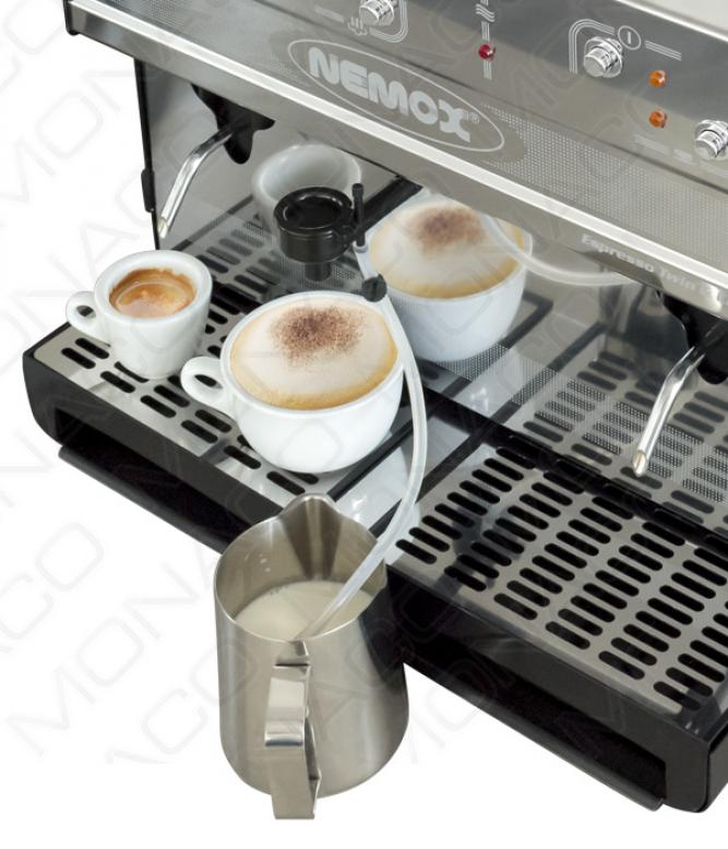 Mléko je nasáváno přímo z krabice a prochází přes šlehací trysku, která umožňuje nastavení teploty mléka a jemnosti pěny.