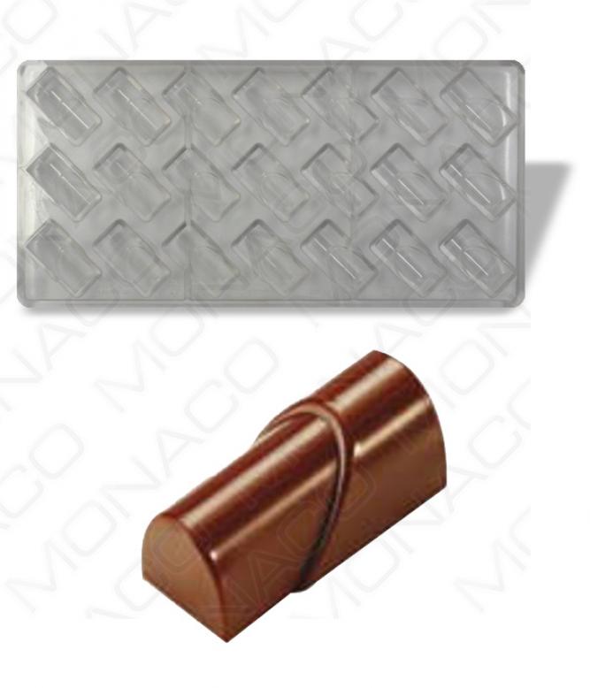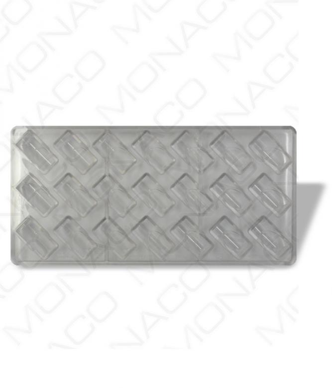 Pevná obdélníková polykarbonátová forma 3x7 tvarů na výrobu čokoládových pralinek.