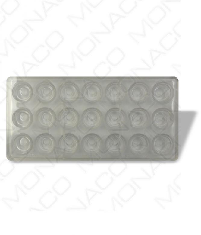 Pevná obdélníková polykarbonátová forma 3x7 tvarů na výrobu čokoládových pralinek.