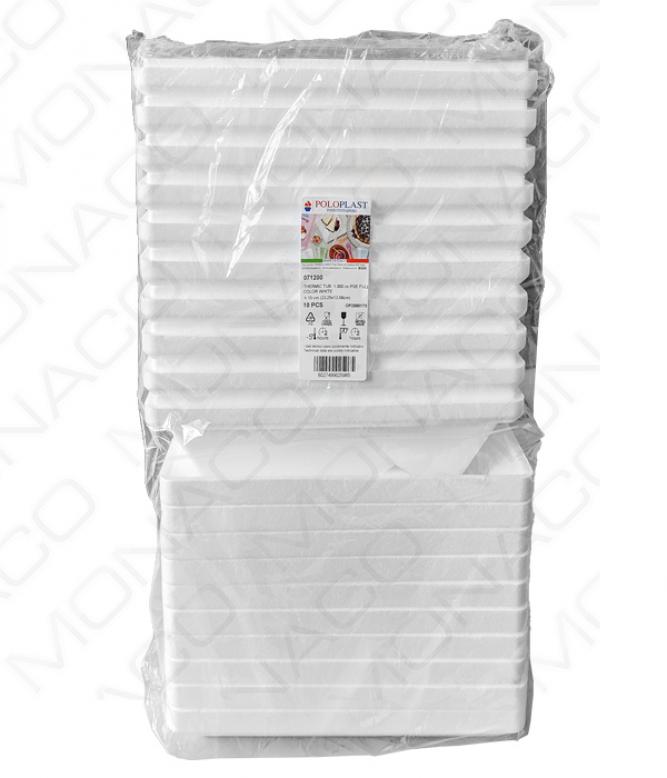 Bílá termovanička s víkem vhodná k uchování zmrzliny až po dobu 60-80 minut. Materiál: polystyren s polyetylenovou vložkou.