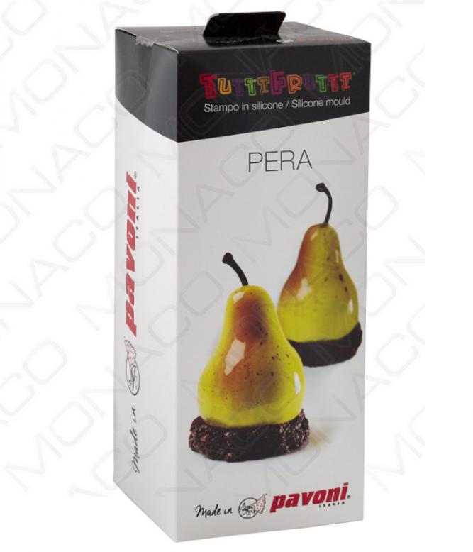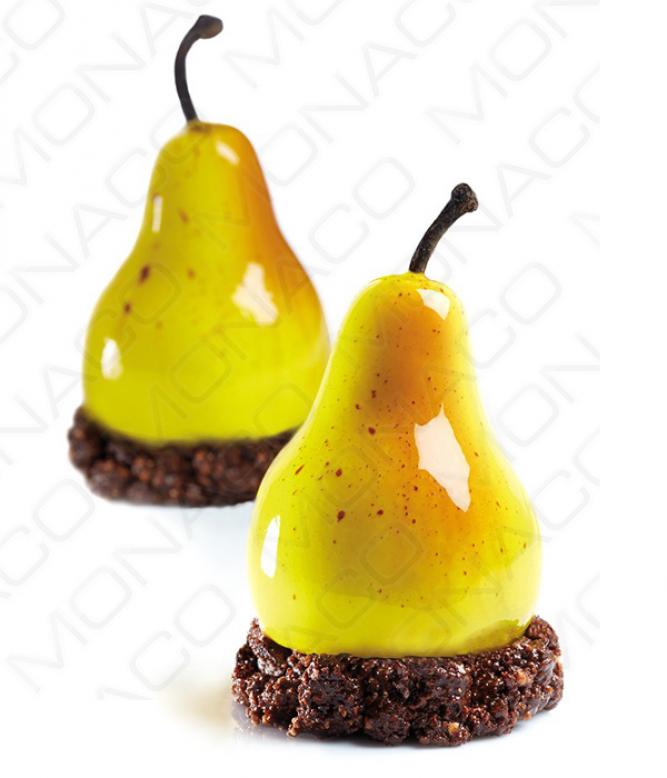 Pružná silikonová forma na výrobu dortíků ve tvaru hrušky ze série Tuttifrutti od cukrářského mistra světa 2015, Emmanuele Forcone.