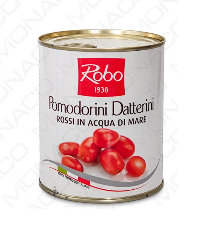 Rajčata celá ve slaném nálevu Datterini Rossi in acqua di mare, Robo 800 g/plechovka