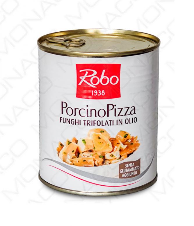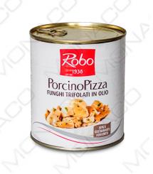 Porcované hříbky, ideální na hlavní chody a rizoto. Výborně se hodí jako přísada na pizzu, příloha k masu a ingredience do polenty. Složení: hříbky (druh Boletus edulis a Stropharia rugosoannullata), 70% slunečnicový olej, sůl, dochucovadla, cukr, petržel, regulátor kyselosti: kyselina citrónová E330, antioxidant: kyselina askorbová E300.