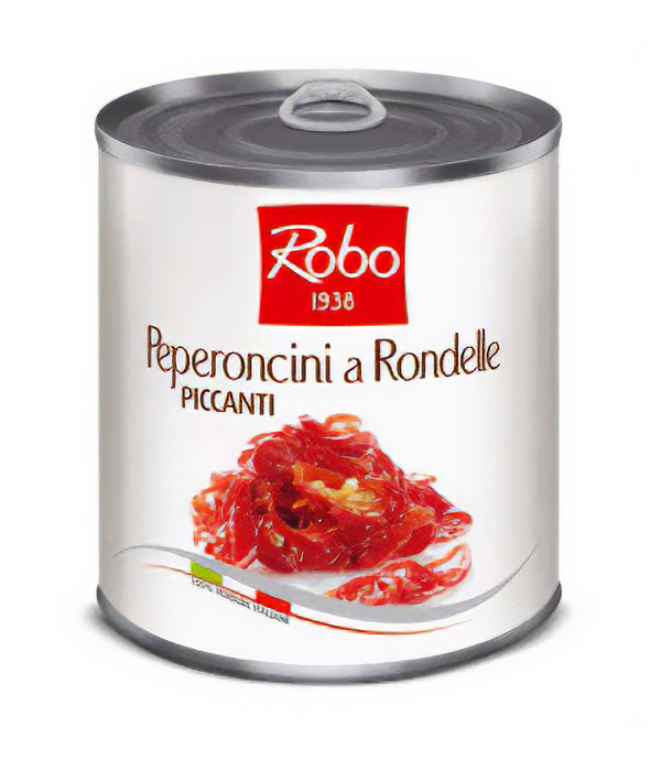 Italské chilli papričky patří pevně do místní kuchyně. Přidávají se do mnoha pokrmů, i z běžné pasty vykouzlí kulinářský zázrak. Pálivé papričky značky Robo se prodávají v plechovce a naložené ve slunečnicovém oleji. Jsou nasekané na malé kousky, což usnadňuje jejich použití. Ideální pro dodání pikantního nádechu každému pokrmu; Perfektní k dochucení těstovin, pizzy,nebo bruschetty.