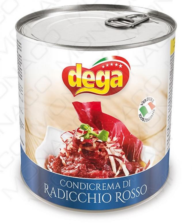Hotový krém Radicchio rosso připravený z červené čekanky naložený v česnekovém nálevu a červeném vínu, připravený k použití. Výborný na přípravu předkrmů, těstovin a hlavních chodů, pro slané dezerty, bruschettu a pizzu.