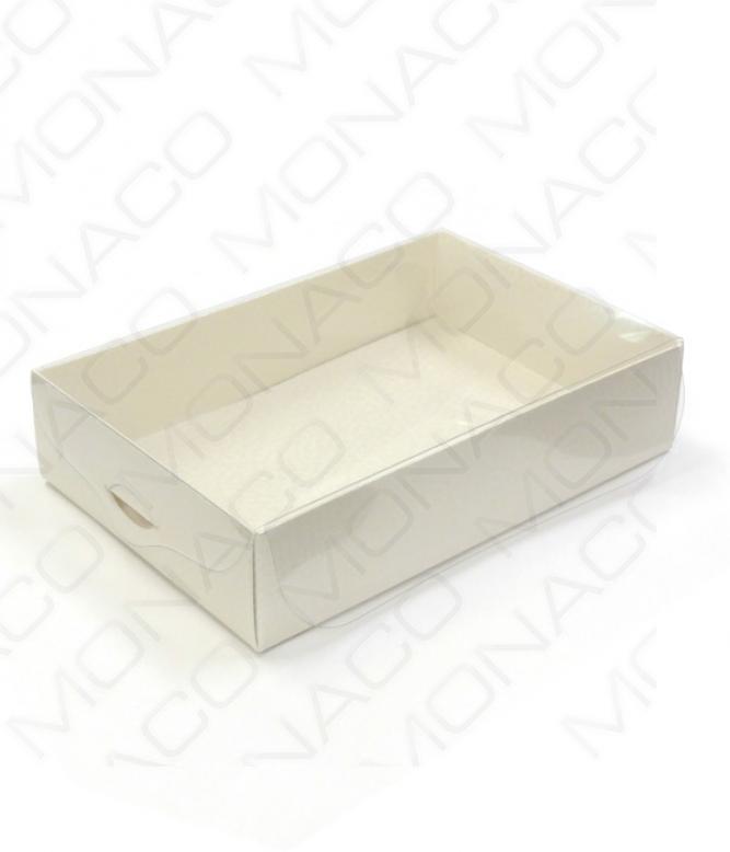 Krabice s průhledným víkem 150x100 v.35mm (kůže bílá) 10 ks/bal