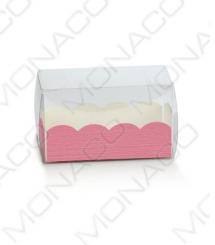 Velice elegantní plastová krabička s papírovovou vložkou ve fuchsiové barvě s jemným reliéfním vzorem.
