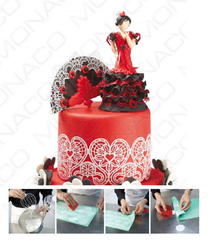Silikonová podložka s jemným reliéfem pro výrobu cukrových krajek v různých dekorech (Sugarveil).