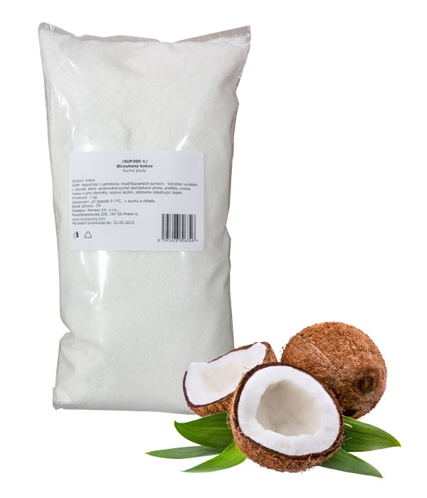 Vyrobeno ze sušeného kokosu.Používá se jako přísada do sladkého pečiva, nebo jako dekorace cukrárenských produktů a zmrzliny.Složení: kokos