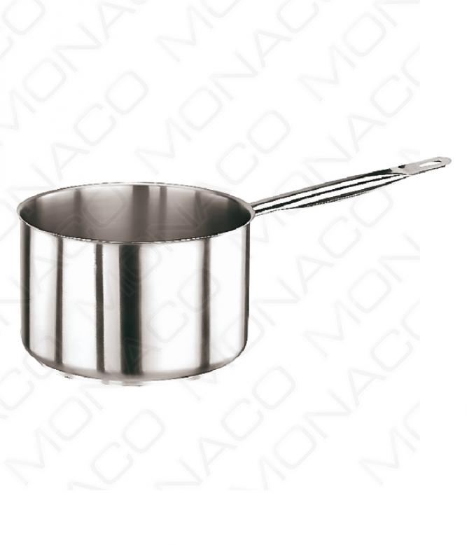 Nerezový kastrol pro profesionální použití s vnitřím i vnějším satinovaným povrchem a ohýbaným okrajem pro snadnější vylévání.