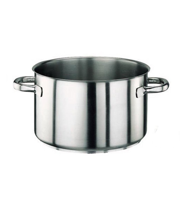 Nerezový kastrol pro profesionální použití s vnitřím i vnějším satinovaným povrchem a ohýbaným okrajem pro snadnější vylévání.