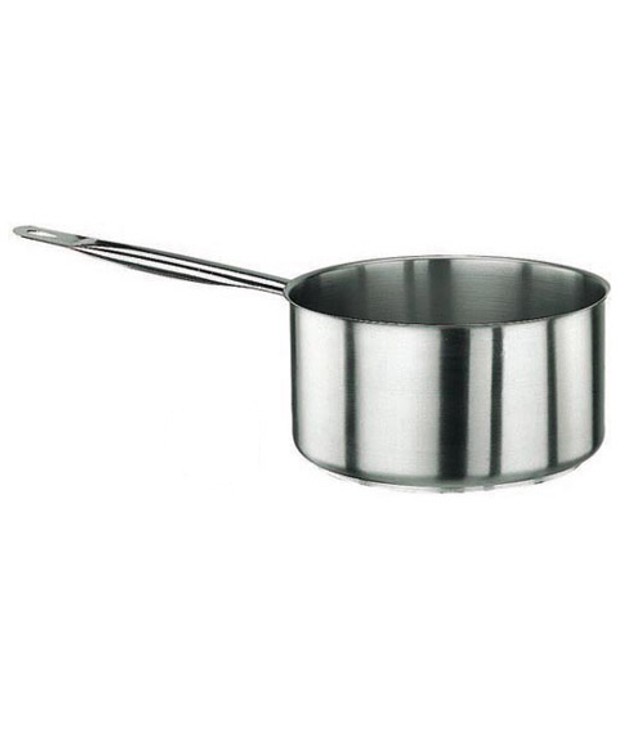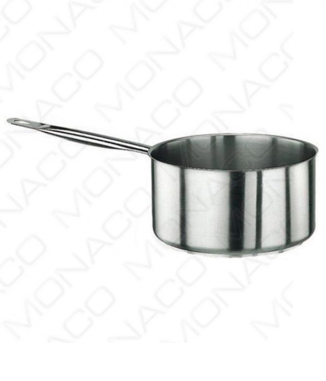 Nerezový kastrol pro profesionální použití s vnitřím i vnějším satinovaným povrchem a ohýbaným okrajem pro snadnější vylévání.