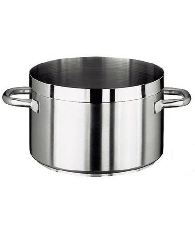 Nerezový kastrol pro profesionální použití s vnitřím i vnějším satinovaným povrchem a zesíleným okrajem.