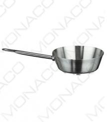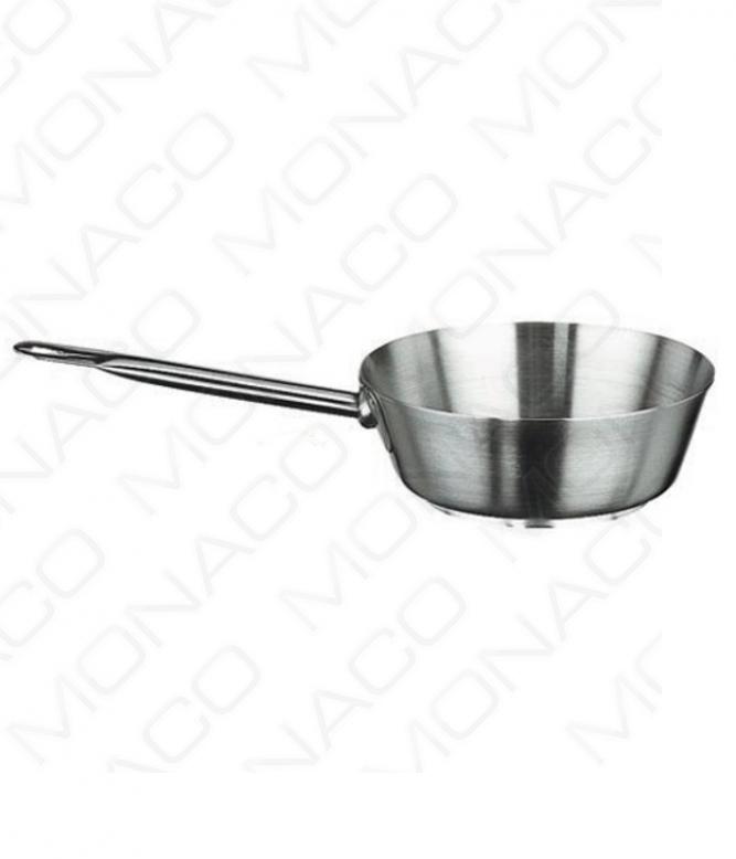 Nerezový kónický kastrol pro profesionální použití s vnitřím i vnějším satinovaným povrchem a zesíleným okrajem.