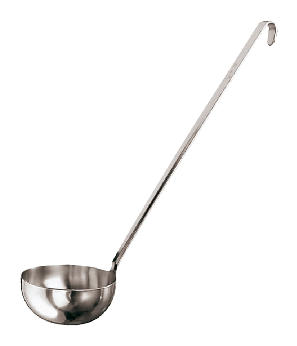 Nerezová naběračka, vyrobena z jednoho kusu materiálu, (tj. držadlo + miska).Držadlo má zesílenou tloušťku a zaoblené hrany.Na držadle je vyznačen poloměr a obsah náběračky.