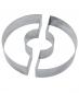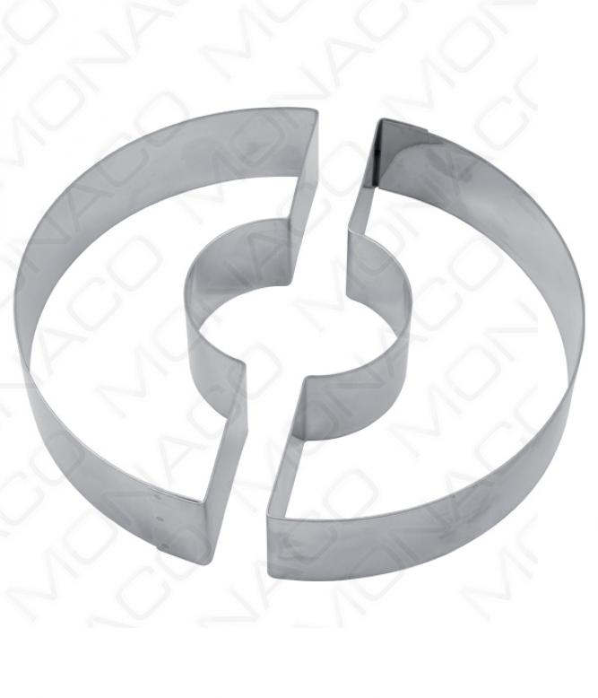 2 kusy nerezových dortových ráfků ve tvaru půleného kruhu.