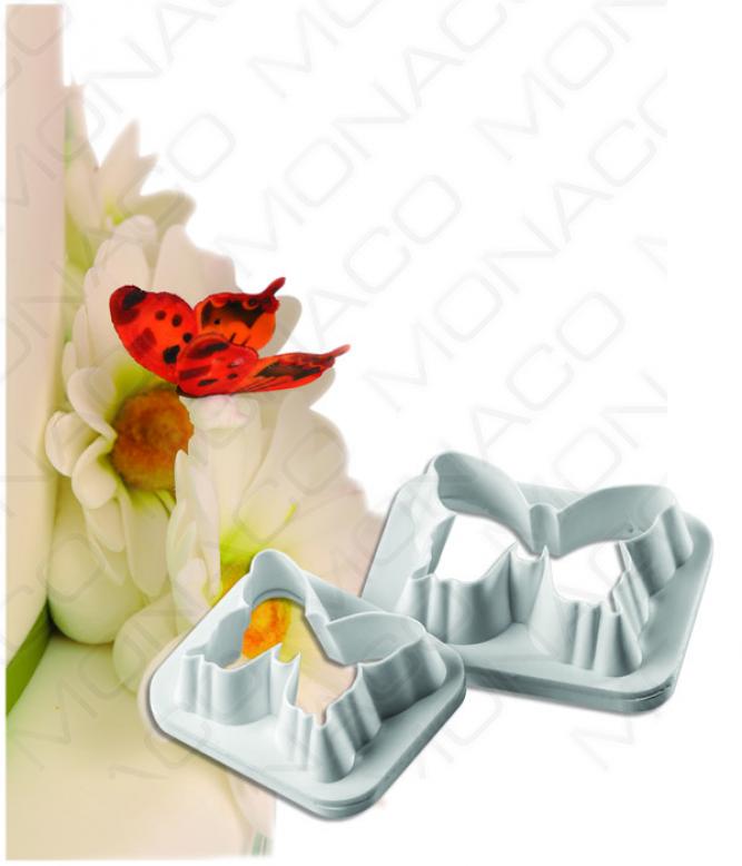 Sada vykrajovátek z plastu na marcipán a cukrové hmotyy. Lze použít v kombinci se stensilem kód: 40-WM034 pro zabarvení motýla aerografem.