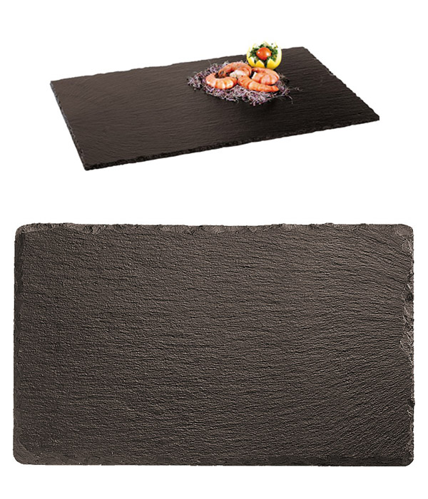 Stylová servírovací deska a podnos z přírodní břidlice vhodná především na vychlazené výrobky (sushi, pralinky a jiné) pro svojí vynikající akumulační schopnost udržovat chladnou teplotu povrchu. Břidlice je pokryta speciálním přípravkem, který odpuzuje oleje a kapaliny. Hrany a okraje jsou zbroušeny do tvaru tak, aby zvýraznily přírodní a typickou struktůru materálu. J