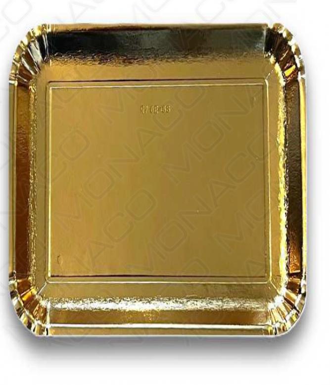 Elegantní papírový tácek s voděodolnou, polyetylenovou, zlatou fólií.
