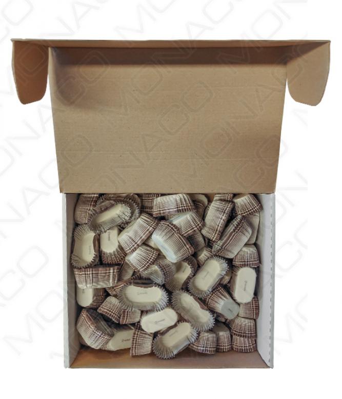 Košíček papírový oválný 40x20, v.20mm (hnědý proužek) 1000 ks/bal