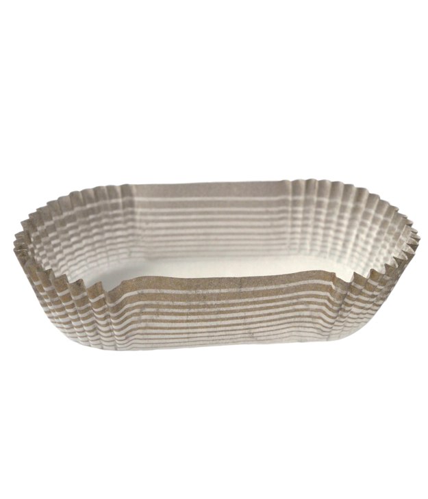 Pergamenový košíček, oválný, proužkovaný zlatý na minidezerty a bonbóny. Nevlhnoucí, dobře drží tvar, vhodný i k pečení.