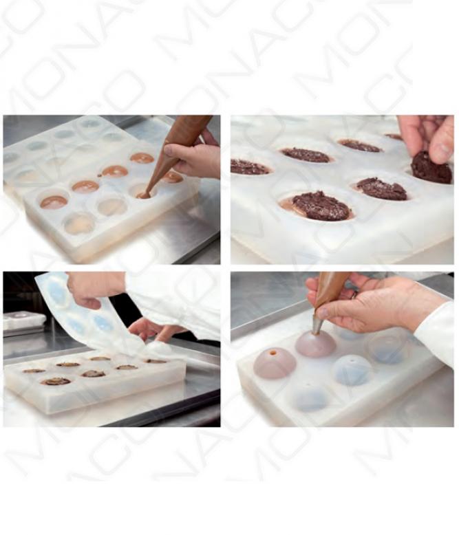 Dvoudílná silikonová forma určená na zamražování až na teplotu -40°C. Na rozdíl od běžných forem se skládá ze dvou dílů do sebe zapadajících. Vynikající na šlehačkové dorty, zákusky a výrobu semifred. Používá se i na přípravu teplých pokrmů. Zaručuje bezchybné výsledky. Formu není nutné před použitím vymazávat ani vysypávat.