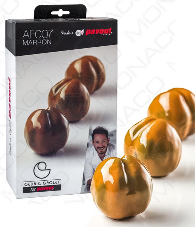 Dvoudílná silikonová forma na výrobu dortíků ze série Pavoflex od cukrářského mistra Cedric Grolet. Série obsahuje formu na oříšky, na citróny a na kaštany. Je určená na zamražování až na teplotu -40°C. Na rozdíl od běžných forem se skládá ze dvou dílů do sebe zapadajících. Vynikající na šlehačkové dorty, zákusky a výrobu semifred. Používá se i na přípravu teplých pokrmů. Zaručuje bezchybné výsledky. Formu není nutné před použitím vymazávat ani vysypávat.