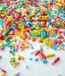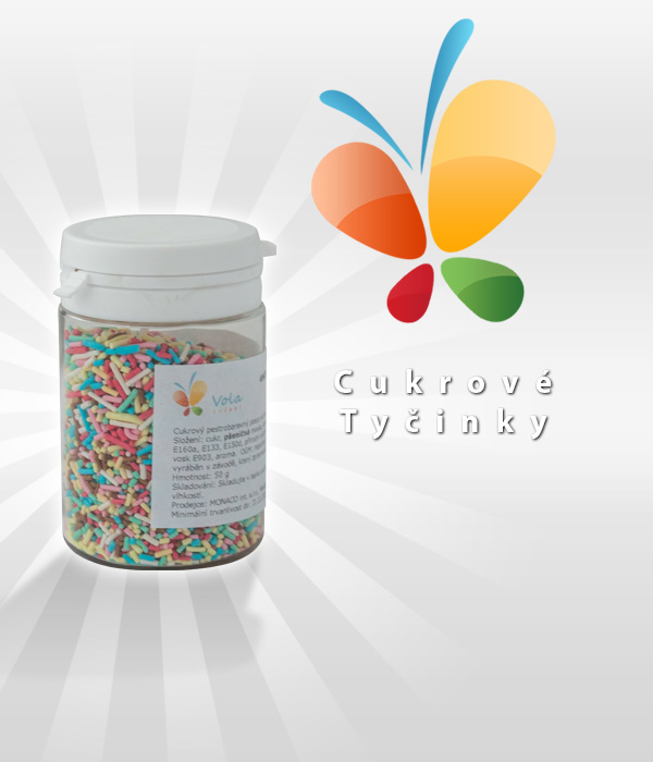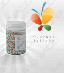 Cukrový pestrobarevný posyp ve tvaru tyčinek.