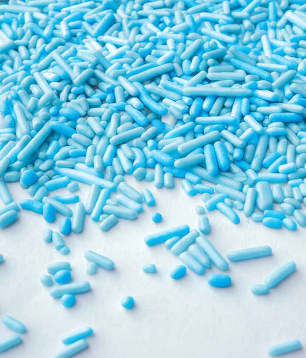 Složení: Cukr (70%), pšeničná mouka, lešticí látka: karnaubský vosk (E903), Barvivo: E133.