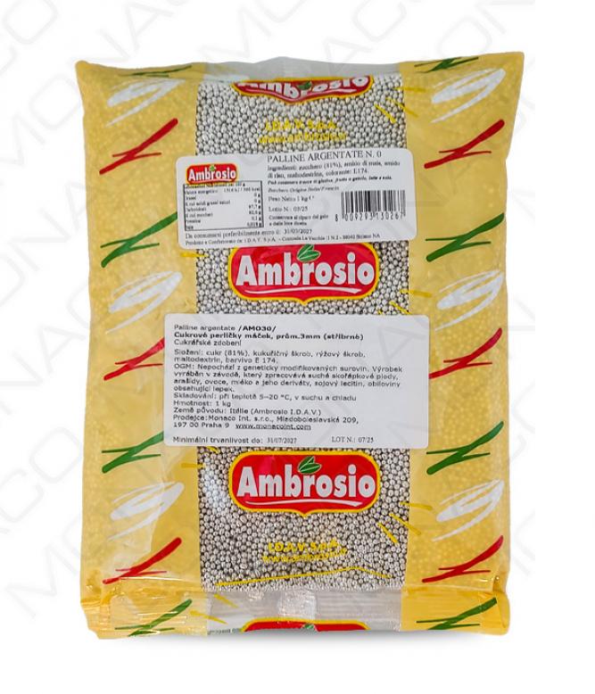 Složení: Cukr (81%), kukuřičný škrob, rýžový škrob, maltodextrin, barvivo E174 (stříbro).