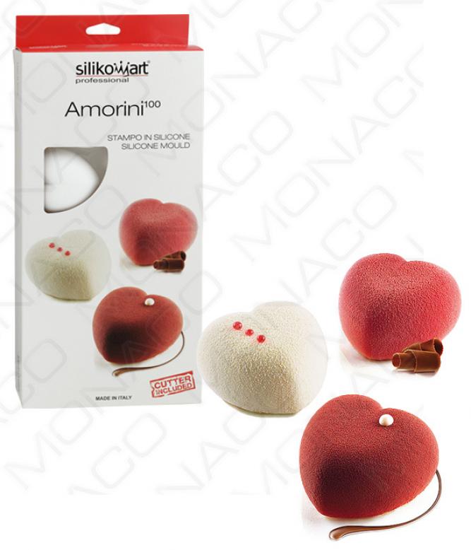 Profesionální silikonová forma ideální pro přípravu romantických jednoporcových dezertů ve tvaru srdce. Každá forma je opatřena inovativním, speciálním lemováním na vrchní části každého srdce, které zajistí zakulacení základny výrobku. AMORINI lze použít k přípravě sladkých i slaných dezertů. Forma je odolná teplotě od -60°C do +230°C. Každé balení obsahuje plastové vykrajovátko, které poslouží k výrobě originálních vložek a/nebo základen, které bezvadně pasují s tvarem formy. Forma se dá použít v mikrovlnné troubě, snadnou údržbu zaručuje možnost mýt ji ručně nebo v myčce. Před použitím výrobek opláchněte ve vodě.